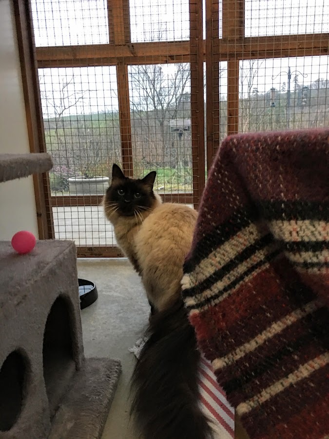 Chelsea and Ash really make their cattery as much as a ‘ home from home ‘ as possible for their cat guests. The set up in the cattery is so well thought out with a quiet bedroom area at the back and a ‘ living room, social area ‘ at the front. Always clean , warm and welcoming . The cats can sit and watch the birds and squirrels out of a window ..their own ‘ cat TV ‘ if you will.